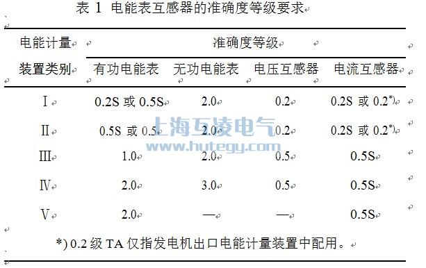 表 1電能表互感器的準(zhǔn)確度等級要求